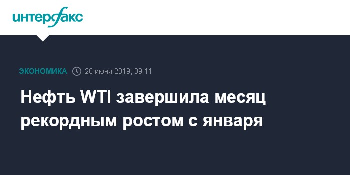 Москва. 28 июня. INTERFAX.RU - Нефтяной рынок умеренно опускается в ходе утренних торгов в пятницу, однако обе эталонные марки завершают месяц в плюсе, причем для WTI рост может стать самым существенным с января на фоне эскалации напряженности на Ближнем Востоке и падения запасов топлива в США.