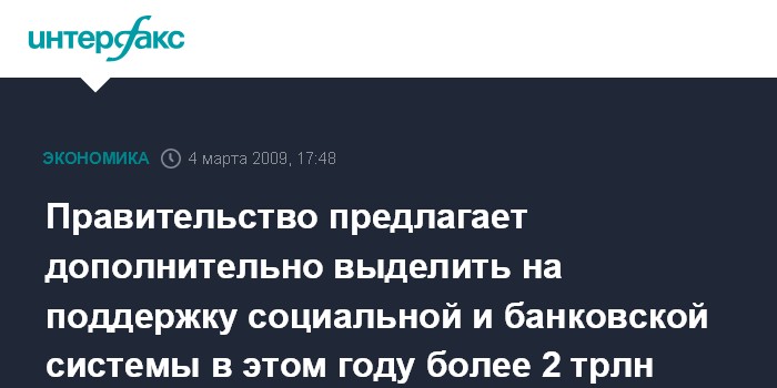 Правительство предлагает дополнительно выделить на поддержку социальной и банковской системы в этом году более 2 трлн рублей