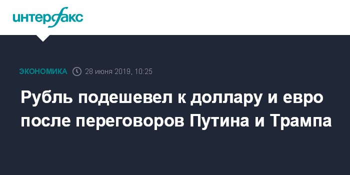 Москва. 28 июня. INTERFAX.RU - Доллар и евро растут на "Московской бирже" в пятницу утром, рубль дешевеет к бивалютной корзине на фоне отсутствия явных результатов по итогам переговоров президентов РФ и США на саммите G20 в Осаке.
