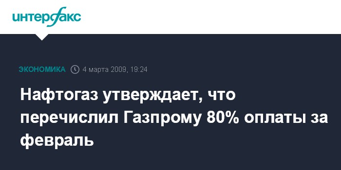 Нафтогаз утверждает, что перечислил Газпрому 80% оплаты за февраль