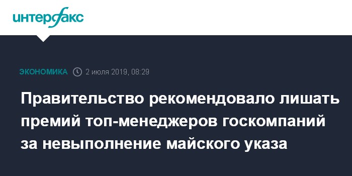 Правительство рекомендовало лишать премий топ-менеджеров госкомпаний за невыполнение майского указа