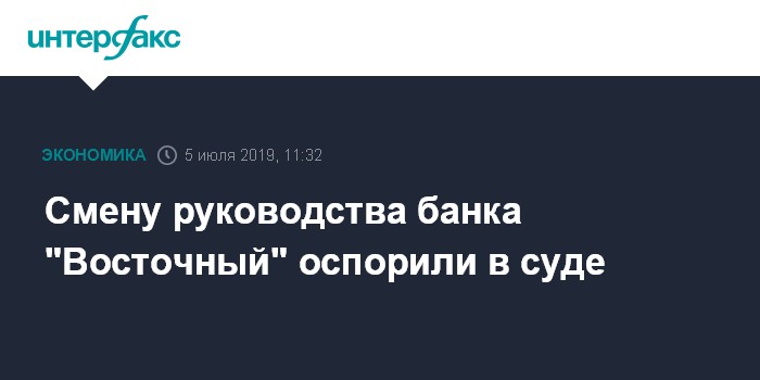 Совет директоров банка ранее решил прекратить полномочия исполняющего обязанности председателя правления "Восточного" Александра Нестеренко с 10:00 4 июля и назначил на этот пост выходца из Юниаструм банка Вячеслава Арутюняна. Кроме того, главным исполнительным директором банка был назначен Константин Рогов.