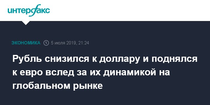 Рубль снизился к доллару и поднялся к евро вслед за их динамикой на глобальном рынке