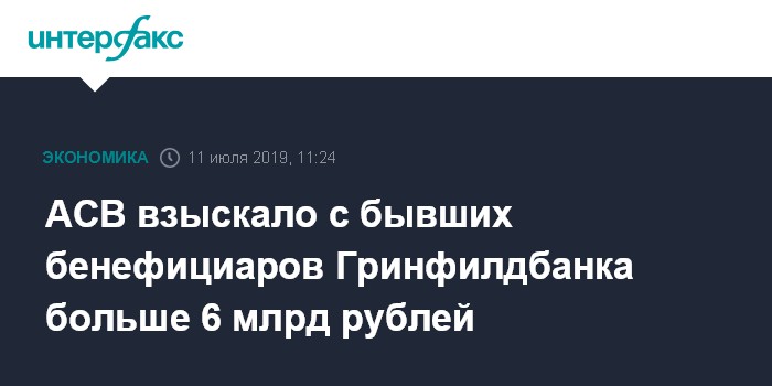 АСВ взыскало с бывших бенефициаров Гринфилдбанка больше 6 млрд рублей