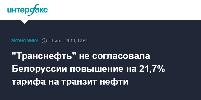Белоруссия собралась поднять тарифы на транспортировку нефти из РФ почти на 22%Читать подробнее"Что касается обращения от 1 июля 2019 года, то на сегодня отсутствуют как итоговые данные по размеру дополнительно полученной от ПАО "Транснефть" тарифной выручки по операциям замещения, так и утвержденный график транспортировки нефти на IV квартал 2019 года. Это не дает возможности произвести корректную оценку "выпадающих доходов" в 2019 году и согласовать справедливый размер повышения тарифов", - сказал Демин.