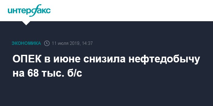 ОПЕК в июне снизила нефтедобычу на 68 тыс. б/с