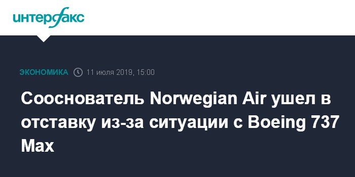 Сооснователь Norwegian Air ушел в отставку из-за ситуации с Boeing 737 Max
