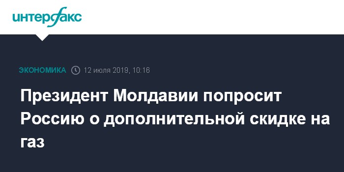 Москва. 12 июля. INTERFAX.RU - Президент Молдавии Игорь Додон попросит у руководства России дополнительную скидку на газ, чтобы не повышать тарифы для населения и иметь возможность "решать текущие проблемы". Он сказал об этом в эфире телеканала Moldova1.