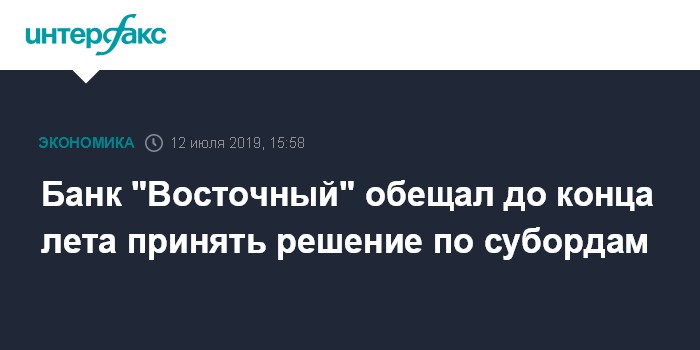 Банк "Восточный" обещал до конца лета принять решение по субордам