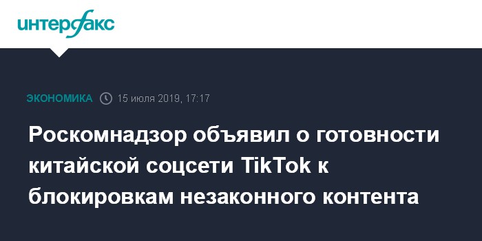Представители TikTok в конце июня говорили "Интерфаксу" о готовности сотрудничать с Роскомнадзором в борьбе с распространением детской порнографией и об использовании модерации для блокировки незаконного контента.