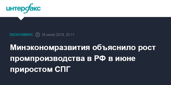 Минэкономразвития объяснило рост промпроизводства в РФ в июне приростом СПГ