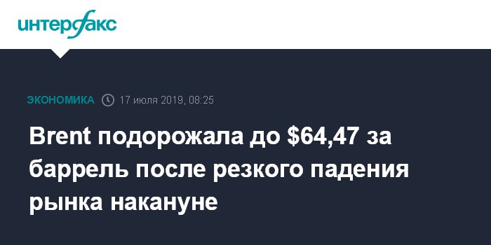 Brent подорожала до $64,47 за баррель после резкого падения рынка накануне