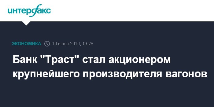 Банк "Траст" стал акционером крупнейшего производителя вагонов
