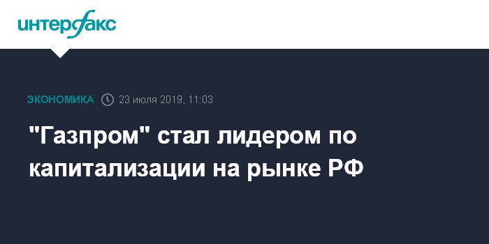 Москва. 23 июля. INTERFAX.RU - "Газпром" стал лидером по капитализации на российском фондовом рынке, обогнав Сбербанк , отмечают эксперты "Интерфакс-ЦЭА".
