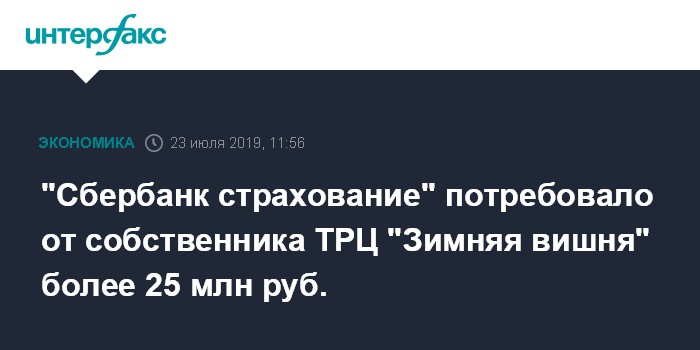 "Сбербанк страхование" потребовало от собственника ТРЦ "Зимняя вишня" более 25 млн руб.