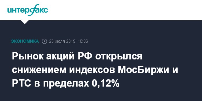 Рынок акций РФ открылся снижением индексов МосБиржи и РТС в пределах 0,12%