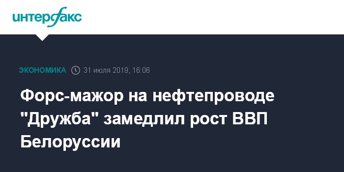 Из-за загрязнения нефти в конце апреля 2019 года Белоруссия приостановила ее прием и переработку, а следовательно и экспорт продукции своих нефтеперерабатывающих заводов. Приостановка этих поставок привела к "существенному снижению чистого экспорта товаров и услуг по итогам II квартала и стало значимым фактором замедления экономического роста в отчетном периоде", говорится в документе.