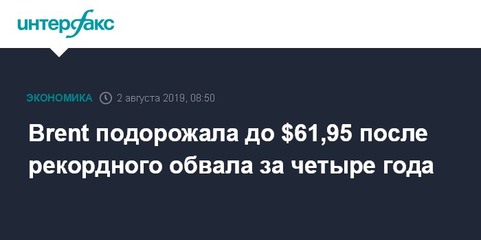 Сентябрьские фьючерсы на Brent на лондонской бирже ICE Futures к 8:21 по московскому времени подорожали на $1,45 (2,4%) - до $61,95 за баррель. На торгах в четверг цена рухнула на $4,55 (6,99%) и составляла на закрытие $60,5 за баррель.