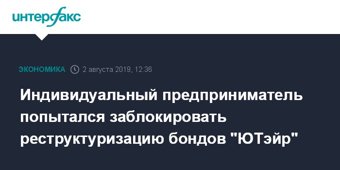 Индивидуальный предприниматель попытался заблокировать реструктуризацию бондов "ЮТэйр"
