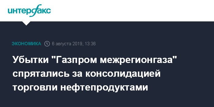 Убытки "Газпром межрегионгаза" спрятались за консолидацией торговли нефтепродуктами