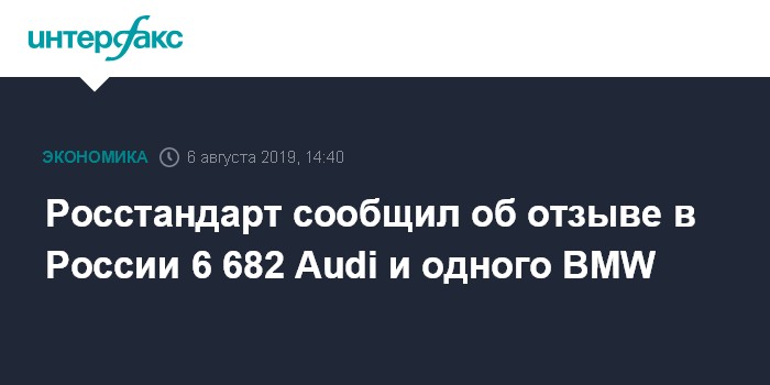 Москва. 6 августа. INTERFAX.RU - Российские представительства Volkswagen и BMW отзывают в России 6 682 автомобилей Audi и один кабриолет BMW 8 Series Convertiblе, сообщила пресс-служба Росстандарта.