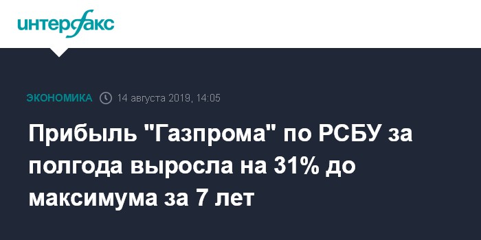 В истории "Газпрома" показатель прибыли за первое полугодие был выше только в 2012 году (382 млрд рублей) и в 2011 году (487 млрд рублей).