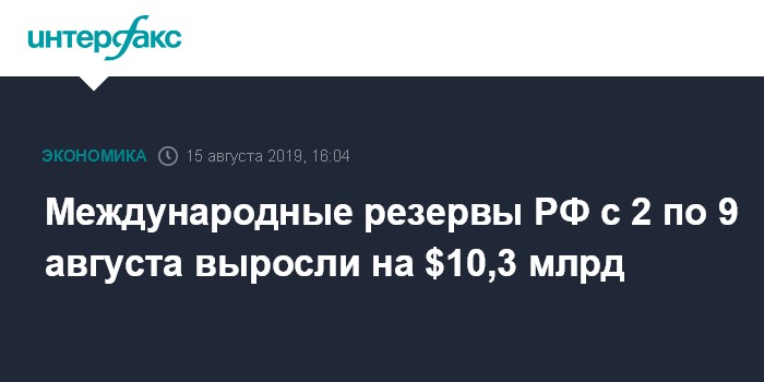 Международные резервы РФ с 2 по 9 августа выросли на $10,3 млрд