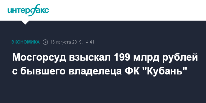 Мосгорсуд взыскал 199 млрд рублей с бывшего владелеца ФК "Кубань"