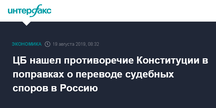 ЦБ нашел противоречие Конституции в поправках о переводе судебных споров в Россию