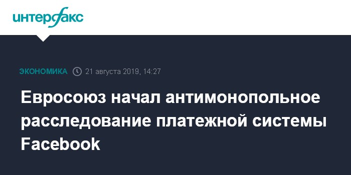 Москва. 21 августа. INTERFAX.RU - Антимонопольные регуляторы Евросоюза начали расследование в отношении Facebook в связи с проектом создания криптовалюты Libra, сообщает Bloomberg со ссылкой на соответствующий документ Еврокомиссии. Чиновники опасаются, что предложенный компанией вариант платежной системы может ограничить конкуренцию.
