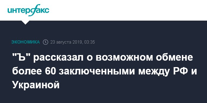 Москва. 23 августа. INTERFAX.RU - До конца августа на родину могут вернуться более 60 находящихся под стражей россиян и украинцев, в их число могут попасть все задержанные в ноябре 2018 года в Керченском проливе украинские моряки, при этом украинского режиссера Олега Сенцова в списках не будет, а главный редактор "РИА Новости Украина" Кирилл Вышинский сам отказался от обмена, сообщает в пятницу газета "Коммерсант" со ссылкой на информированные источники.