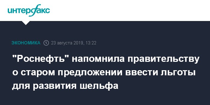 В середине июля компания написала письмо в администрацию президента и указала, что Минфин и Минэнерго до сих пор не завершили проработку трех предложений "Роснефти" о стимулировании развития шельфа, рассказал он. Ранее компания предлагала освободить от ввозных пошлин и НДС оборудование для береговых объектов, участвующих в освоении морских участков; организовать беспошлинную заправку судов и перевести месторождения Печорского и южной части Охотского морей из второй в четвертую и третью льготную группу участков на шельфе.