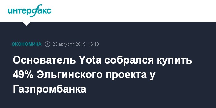 Основатель Yota собрался купить 49% Эльгинского проекта у Газпромбанка