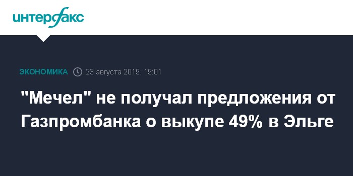 Газпромбанк ранее заявил, что получил предложение от одного из инвесторов на покупку доли в Эльге. При этом у "Мечела" по закону есть преимущественное право выкупить долю банка в течение месяца.