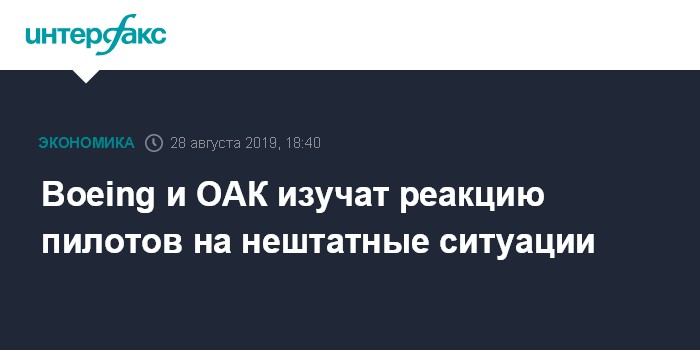 Boeing и ОАК изучат реакцию пилотов на нештатные ситуации