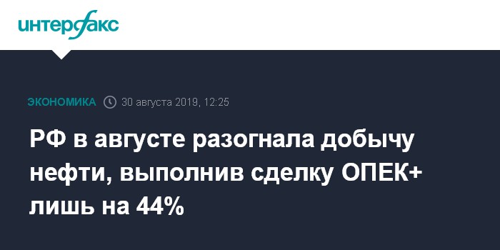 РФ в августе разогнала добычу нефти, выполнив сделку ОПЕК+ лишь на 44%