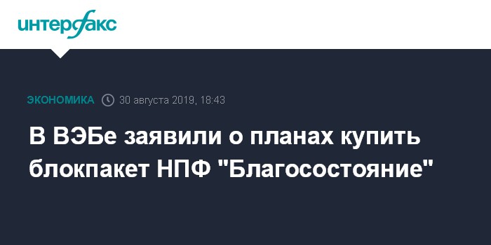 В ВЭБе заявили о планах купить блокпакет НПФ "Благосостояние"