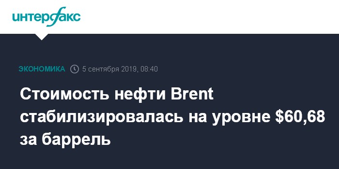 Стоимость нефти Brent стабилизировалась на уровне $60,68 за баррель