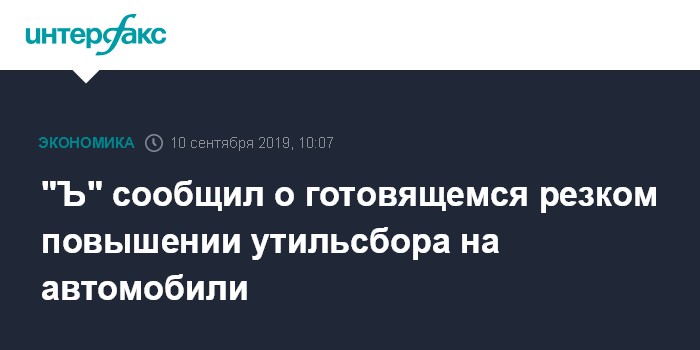 Москва. 10 сентября. INTERFAX.RU - Правительство с 1 января 2020 года может существенно повысить утилизационный сбор на автомобили. С такой идеей выступил Минпромторг, выяснила газета "Коммерсантъ".