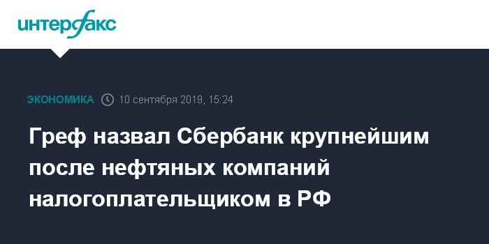 Греф назвал Сбербанк крупнейшим после нефтяных компаний налогоплательщиком в РФ