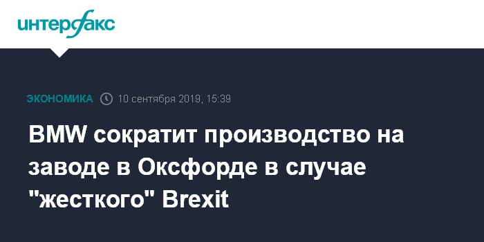 Москва. 10 сентября. INTERFAX.RU - Германский автопроизводитель BMW сократит производство на заводе в Оксфорде, если Великобритания выйдет из Европейского союза без заключения сделки с Брюсселем, пишет агентство Bloomberg со ссылкой на финансового директора компании Николаса Питера.