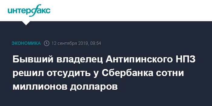 Бывший владелец Антипинского НПЗ решил отсудить у Сбербанка сотни миллионов долларов