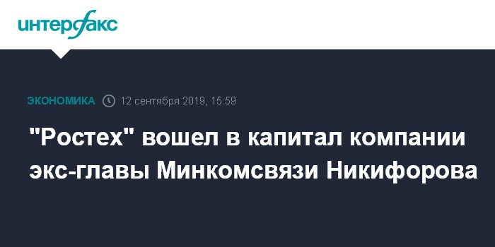 "Ростех" вошел в капитал компании экс-главы Минкомсвязи Никифорова
