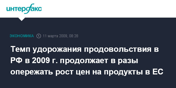 Темп удорожания продовольствия в РФ в 2009 г. продолжает в разы опережать рост цен на продукты в ЕС