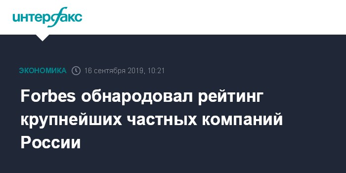 Forbes обнародовал рейтинг крупнейших частных компаний России