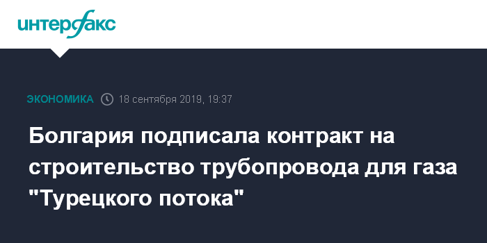 Москва. 18 сентября. INTERFAX.RU - Болгарский газотранспортный оператор "Булгартрансгаз" спустя почти полгода административных разбирательств и судебной волокиты смог подписать контракт на строительство газопровода, который в стране назвали "Балканский поток" (Balkan Stream), с консорциумом Arkad.