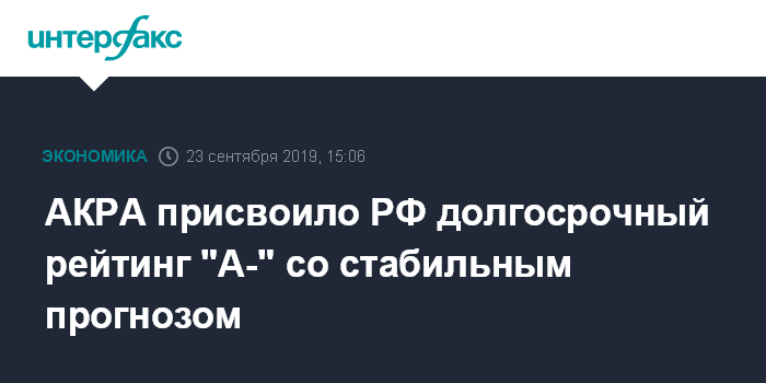 АКРА присвоило РФ долгосрочный рейтинг "А-" со стабильным прогнозом