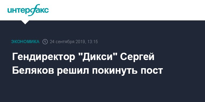Москва. 24 сентября. INTERFAX.RU - Генеральный директор ритейлера "Дикси" Сергей Беляков принял решение покинуть компанию.