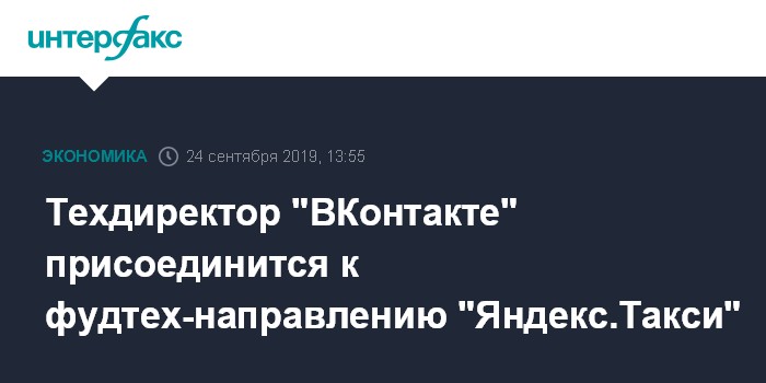 Техдиректор "ВКонтакте" присоединится к фудтех-направлению "Яндекс.Такси"