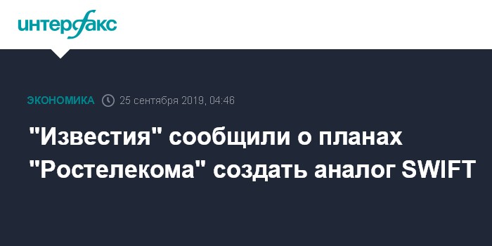 "Известия" сообщили о планах "Ростелекома" создать аналог SWIFT